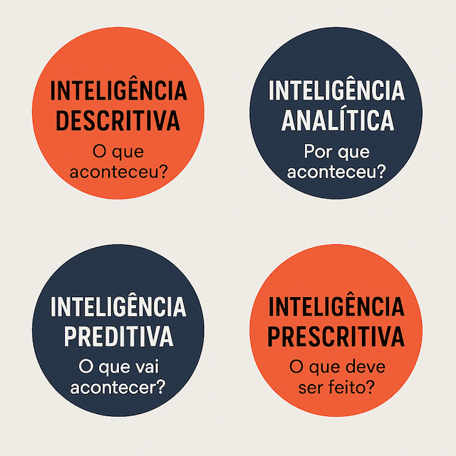 Com base em seus ensinamentos, entendo que um negócio que quer liderar precisa articular quatro funções de inteligência: descritiva, analítica, preditiva e prescritiva. Juntas, elas formam uma escada de maturidade que leva dados brutos a decisões que fazem diferença na vida das pessoas e dos negócios.